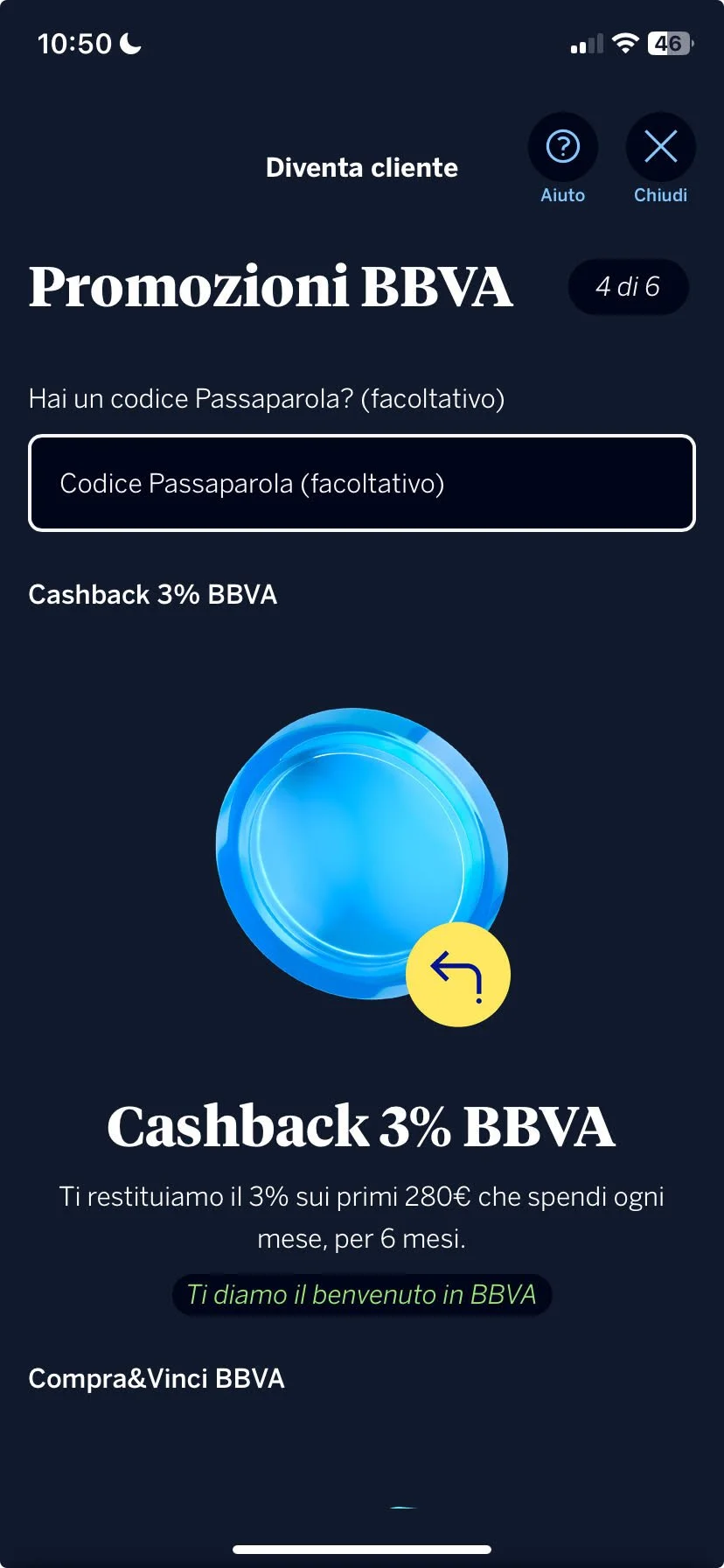 Per ricevere il bonus devi effettuare una transazione con la tua carta BBVA;