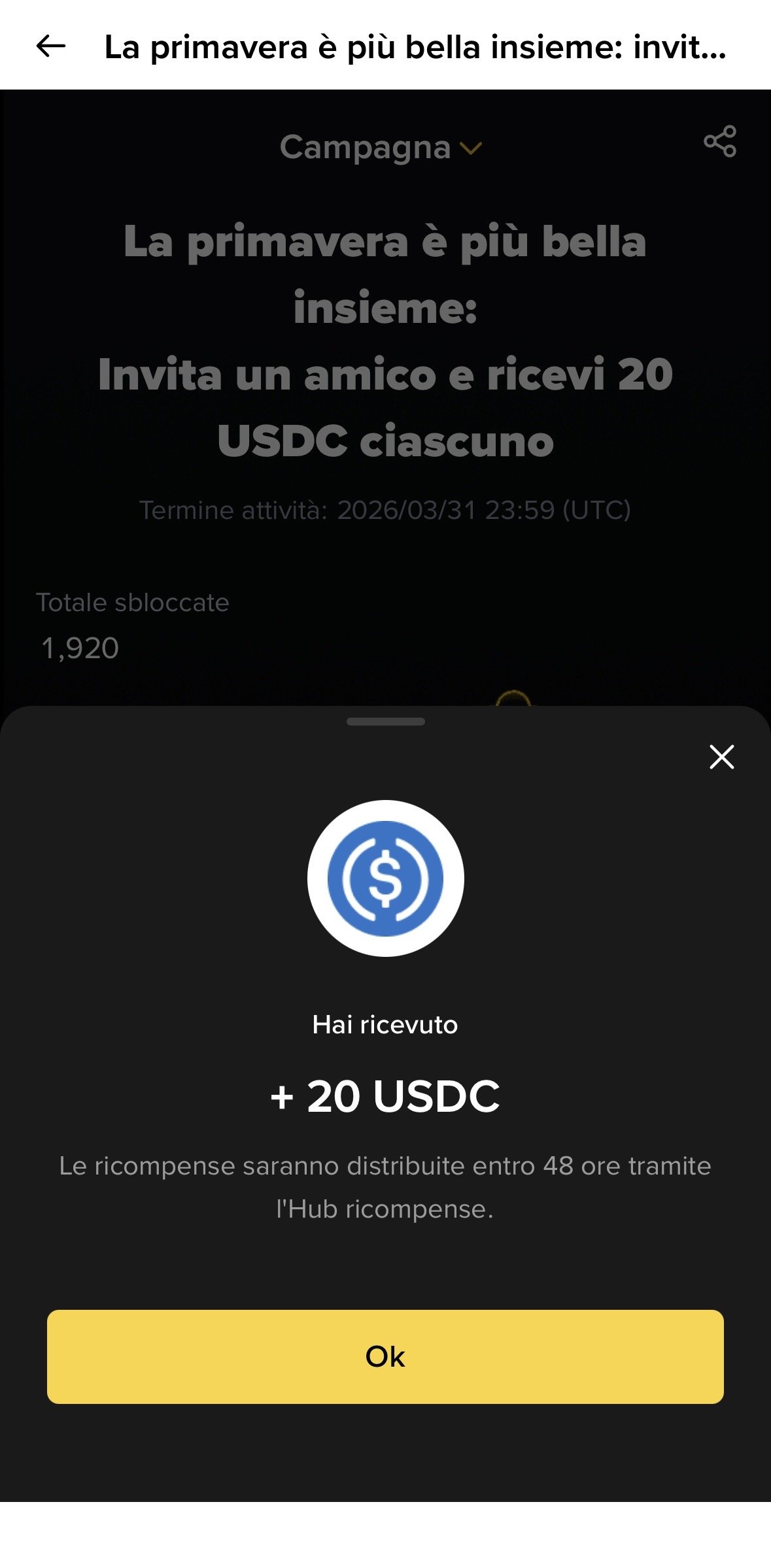 La ricompensa verrà emessa in USDC, per trasformarli in EUR seguite i passaggi dello STEP 3 su come vendere criptovaluta.
