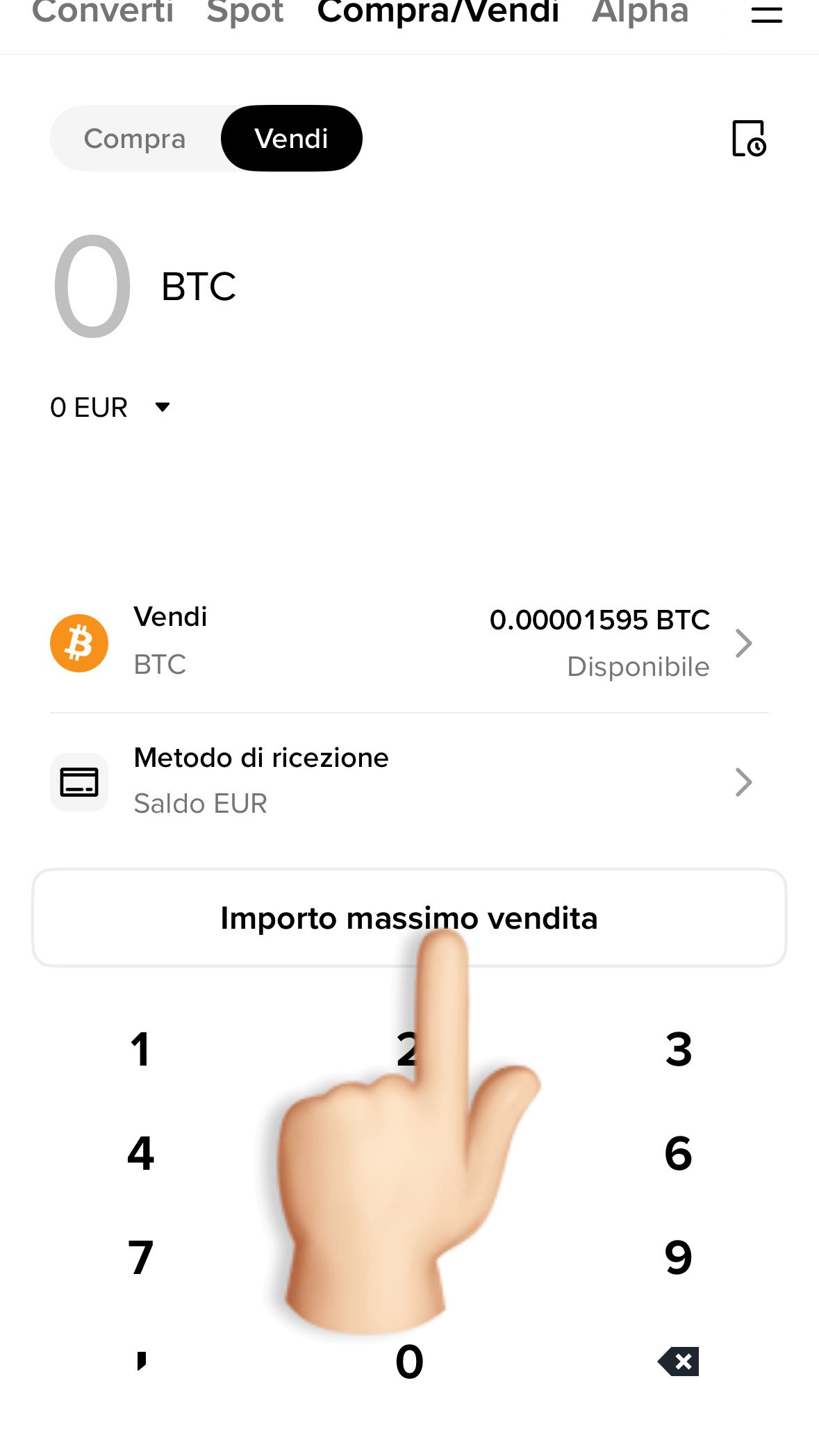Una volta premuto vendi, selezionate di nuovo BTC come valuta da vendere